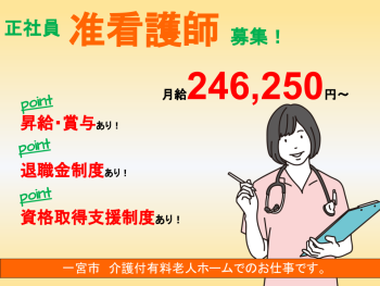 職種 正看護師 夜勤専従 一宮市 副業 勤務地 愛知県一宮市木曽川町黒田三ノ通り32-1 給与 日給 30,000円 時給1,846円 -