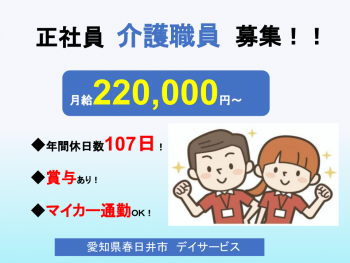 正社員(愛知県春日井市)介護職員 募集!【正社員:デイサービスでのお仕事です】 春日井市白山町 月給 220,000円 -