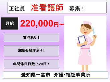 正社員(愛知県一宮市)准看護師 募集!【正社員:介護・福祉事業所でのお仕事です】 一宮市東五城北作野 月給 220,000円 -