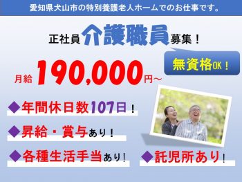 ≪看護業務≫ ◆介護サービス事業所での看護業務(要介護高齢者・障がい者等の バイタルチェック、病後の家庭生活指導、食事・排泄・入浴の介助 、その等) ○就業時間・休日については相談に応じます! *詳細については面接時に説明いたします。 *応募希望の方はハローワークより「紹介状」の交付を受けて下さ い。 □変更範囲:法人の定める業務 |