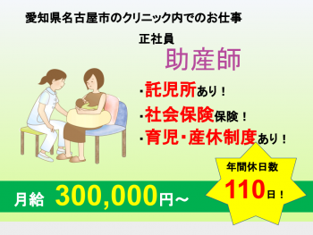 正社員(愛知県名古屋市緑区)助産師 募集!【正社員:クリニック内でのお仕事です】 名古屋市緑区水広 月給 300,000円 -