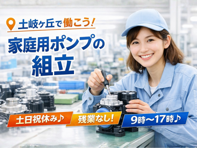 家庭用ポンプをつくる工場でのライン組立作業です! 部品を決まった位置に取り付けたり、工具を使って組み立てたりするシンプルな作業が中心。 マニュアル通りに進めるので、未経験の方でも始めやすいのが魅力です。 流れ作業なので、一度慣れてしまえば毎日スムーズに作業できます。 「モクモクと作業するのが好き」「手を動かすのが得意」という方にピッタリ♪ 職場は冷暖房の効きやすいエリアもあり、休憩室や食堂も完備。 仲間と声を掛け合いながら進めるので安心感があります(^^) |