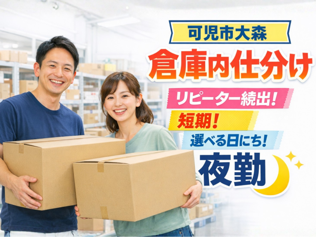 | 職種 | 倉庫内仕分け/食品仕分け/飲料仕分け/夜勤スタッフ/短期バイト単発バイト/ゴールデンウィーク短期/物流センター |